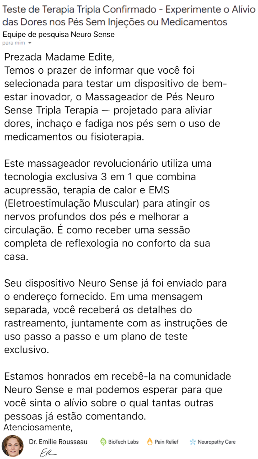 "‘Estão chamando de um sistema de reparo nervoso tão potente quanto uma cirurgia, mas que você usa em casa’, ele me disse. ‘Os resultados de antes e depois que eu vi são de cair o queixo, Roberto. INACREDITÁVEIS.’